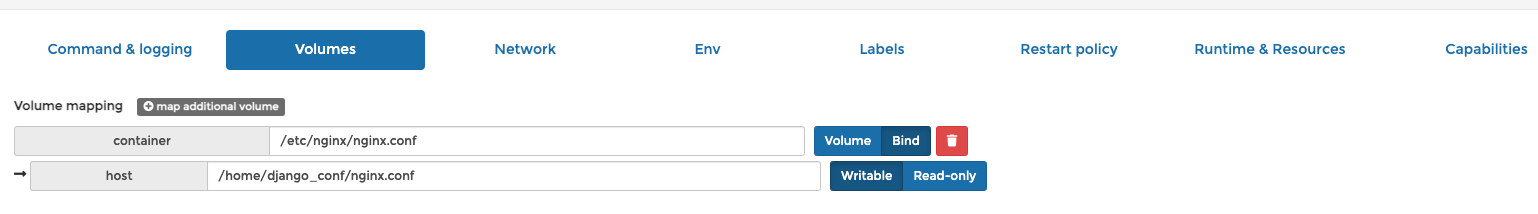 nginx 설정파일 연결 (컨테이너 외부 파일을 내부로 연결시킬때 volumes의 bind를 통해 지정)