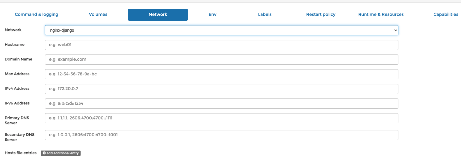 network 탭에서 위에서 만든 네트워크 지정