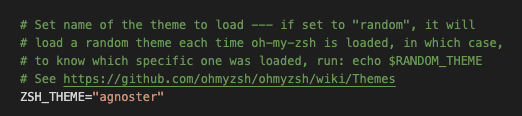 ZSH_THEME = "agnoster" 로 변경 (깃 상태 등을 알려줌)