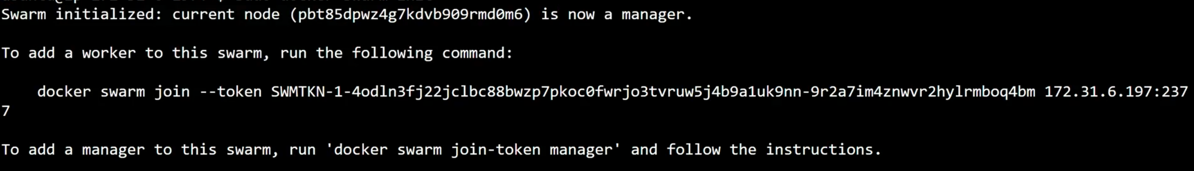 docker swarm init아래 내용이 나오면 성공